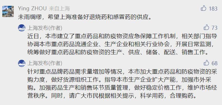 此外,“上海發(fā)布”微信公眾號還表示,近日,上海市建立了重點藥品和防疫物資應(yīng)急保障工作機制,相關(guān)部門指導(dǎo)協(xié)調(diào)本市重點藥品流通企業(yè)、生產(chǎn)企業(yè)和相關(guān)行業(yè)協(xié)會,開展日常監(jiān)測,統(tǒng)籌做好重點藥品和防疫物資的生產(chǎn)、供應(yīng)、儲備、配送、銷售工作。針對重點品牌藥品需求量增加等情況,上海市加大重點藥品和防疫物資的采購力度,做好貨源組織工作;指導(dǎo)上海市生產(chǎn)企業(yè)擴大產(chǎn)能,加強市外采購;加強藥品生產(chǎn)和銷售環(huán)節(jié)質(zhì)量管理,做好穩(wěn)定價格工作,維護市場經(jīng)營秩序。同時,請廣大市民根據(jù)相關(guān)提示,科學(xué)用藥,合理購藥。