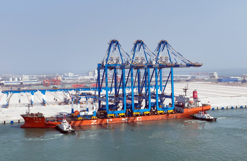 欽州自動(dòng)化集裝箱碼頭二期共配置7臺(tái)自動(dòng)化雙小車岸橋,此次到港的3臺(tái)岸橋?yàn)樽詣?dòng)化雙小車岸橋,是國(guó)內(nèi)最大的岸吊設(shè)備之一,前伸距70米,吊具下額定載荷70噸、主起升高度50米、主小車后伸距16米、門架小車后伸距24米,可滿足20萬(wàn)噸級(jí)船舶的作業(yè)需求。同時(shí),岸橋配備分離式吊具上架,主起升可同時(shí)起吊兩個(gè)40英尺或四個(gè)20英尺集裝箱,作業(yè)效率更高。