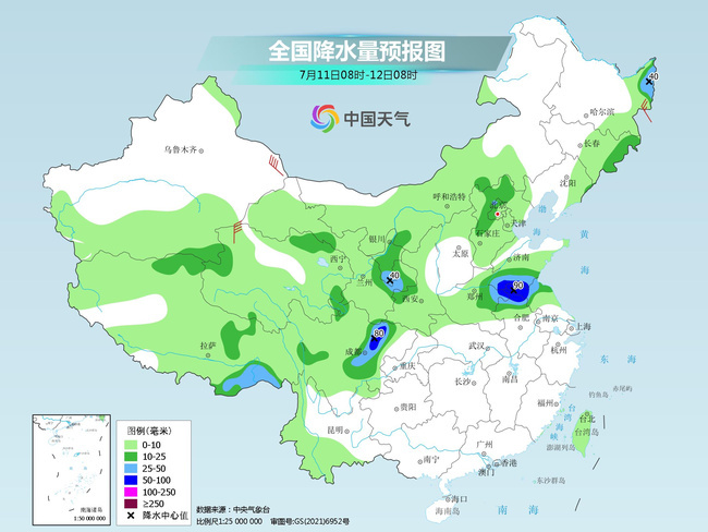 隨著副熱帶高壓北抬,7月11日至14日,雨帶北抬,四川盆地至黃淮、華北、東北地區(qū)將有較強降雨,并伴有雷暴大風、冰雹等強對流天氣。其中今天,黑龍江東北部、吉林東部、河北中北部、北京、甘肅東南部、四川盆地西部、河南東部、山東南部、蘇皖北部及西藏北部和東南部、青海西部等地的部分地區(qū)有中到大雨,其中,山東南部、河南東部、安徽北部、江蘇北部、四川盆地西北部等地局地有暴雨(50~90毫米)。