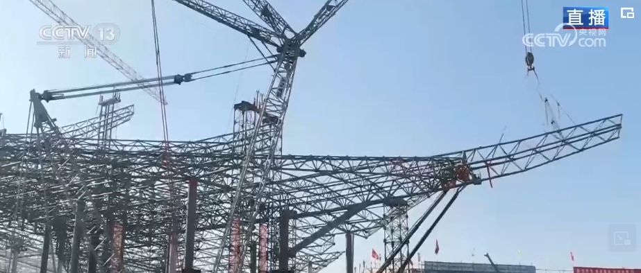 總臺記者 韓志濤:隨著最后一榀鋼梁順利吊裝到位,機場主航站樓鋼結(jié)構(gòu)合攏。航站樓的設計靈感來源于閩南傳統(tǒng)大厝,遠看就像一只展翅飛翔的白鷺。白鷺身體部分就是主航站樓,像一個大屋蓋,總面積相當于18個標準足球場,總用鋼量達到1.1萬噸,重量相當于181節(jié)火車車廂。想把這些鋼梁安全架上去,誤差要控制在毫米級,可以說難度非常大,究竟是怎么完成的?建設者們想了一個巧妙的辦法,像拼搭積木一樣把屋蓋分為三個部分,先在樓面的原位進行拼接,然后是分區(qū)域用液壓設備同步提升,最后在空中轉(zhuǎn)體調(diào)整角度。施工人員介紹,作業(yè)中最大單個提升區(qū)面積達3萬多平方米,提升重量有2600多噸,由數(shù)萬個構(gòu)件拼接而成。完成后同步啟動60多個液壓提升點向上整體提升1米,懸空后通過空中旋轉(zhuǎn)7度,調(diào)節(jié)到設計姿態(tài),最后提升到31米后精準安裝。