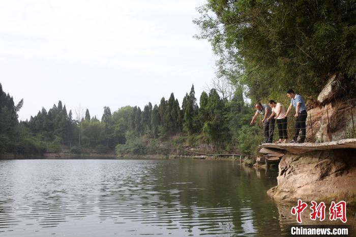 游客正在四川省內(nèi)江市東興區(qū)平坦鎮(zhèn)姜家村蛟龍湖水庫觀看桃花水母?!√m自濤 攝