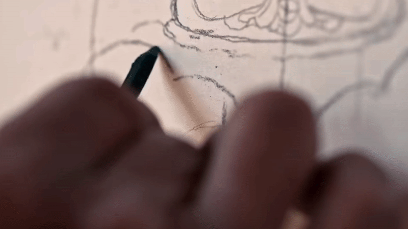 才仁桑珠為一幅唐卡漆畫巨作起草線稿。新華社記者魏冠宇 攝