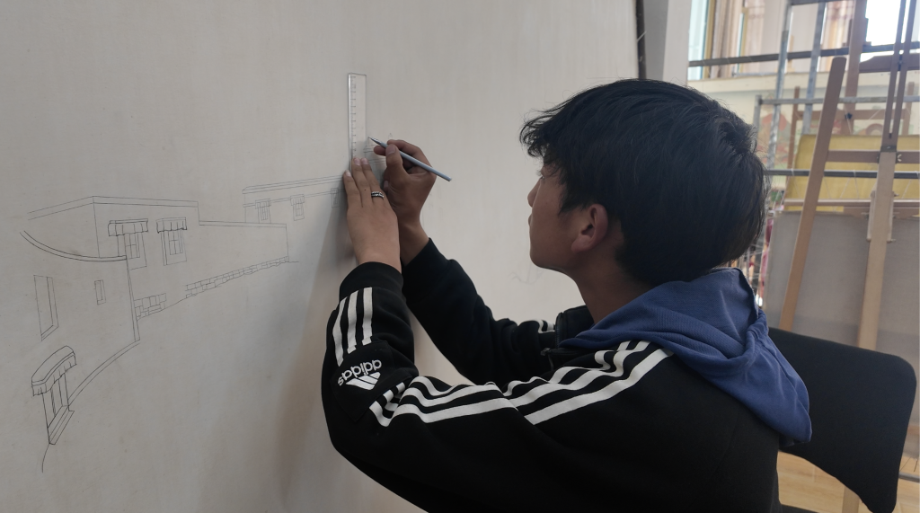 受嘎瑪?shù)吕沼绊?,丁增平?015年成立嘎瑪嘎赤唐卡畫院,為農(nóng)牧民學(xué)生提供免費教學(xué)和吃住,現(xiàn)已培養(yǎng)上百名學(xué)生?!拔液屯庾娓付枷M馨旬嬇蓚鞒邢氯?,也讓更多人有一技之長?!倍≡銎酱胝f。