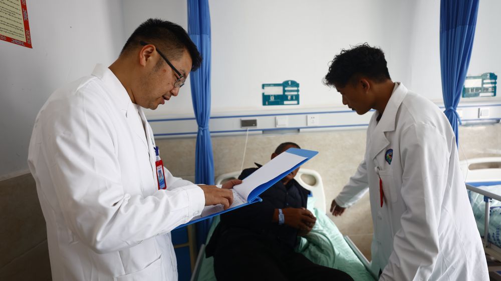 向桂林是一名援藏醫(yī)生,2023年3月,他從重慶市萬州區(qū)來到西藏自治區(qū)昌都市察雅縣開展醫(yī)療援藏工作。在察雅的一年半里,向桂林和隊員們參加了一百多次義診和下鄉(xiāng)指導,累計接診門診患者1000余人次、救治住院患者400余人次,開展手術(shù)35臺,申報新技術(shù)10項。今年國慶,向桂林選擇繼續(xù)留守工作崗位。“只能在視頻通話里和家人團聚了。但這是我們的責任更是一種榮譽?!毕蚬鹆终f。