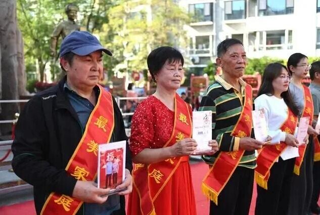 9月25日,寧夏銀川市長城花園社區(qū),居民領取社區(qū)“最美家庭”獎。
