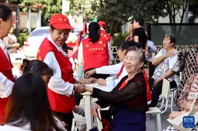 民族團結進步創(chuàng)建進社區(qū)。這是9月20日,獲評“全國民族團結進步模范集體”的昆明市盤龍區(qū)聯(lián)盟街道小壩社區(qū)志愿者為居民提供志愿服務。(莫欣竹 攝)