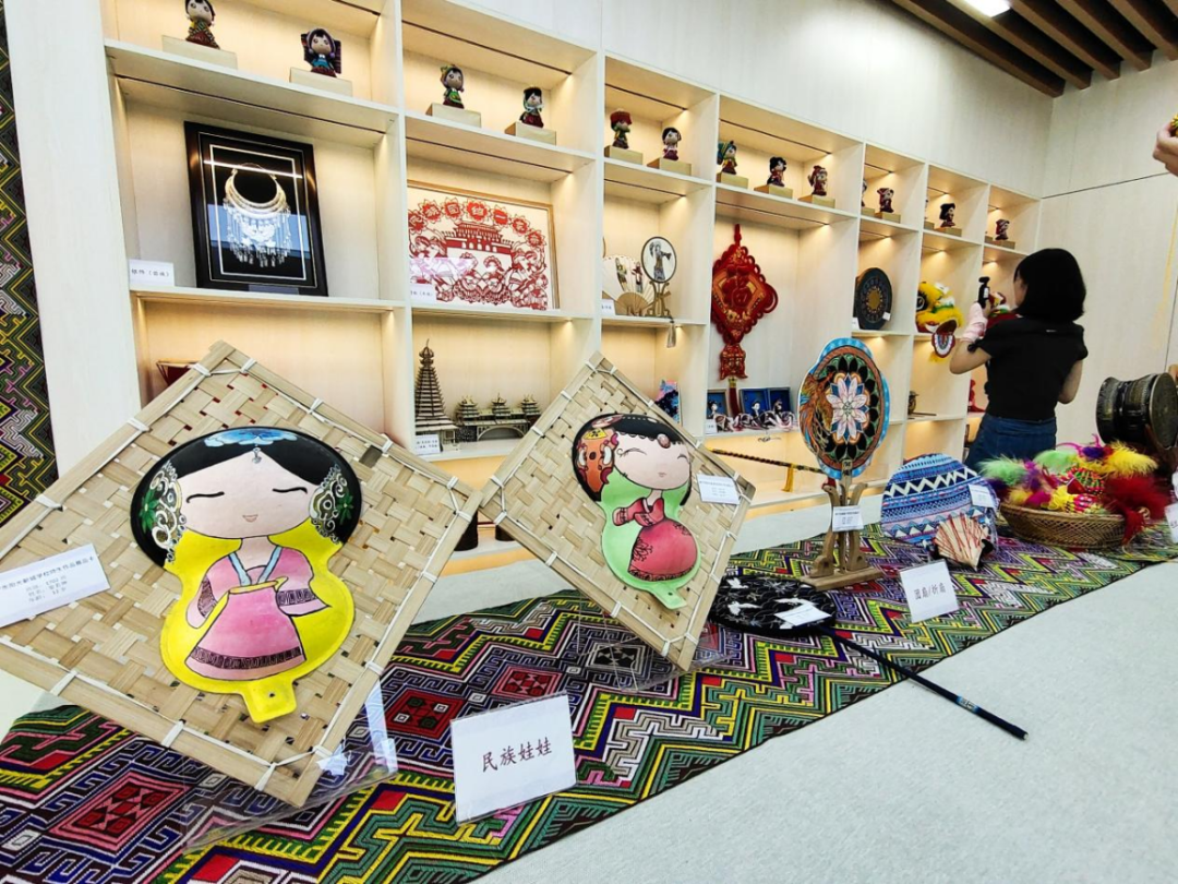 在蟠龍社區(qū)黨群服務(wù)中心,社區(qū)專門設(shè)置民族文化作品展示區(qū)。