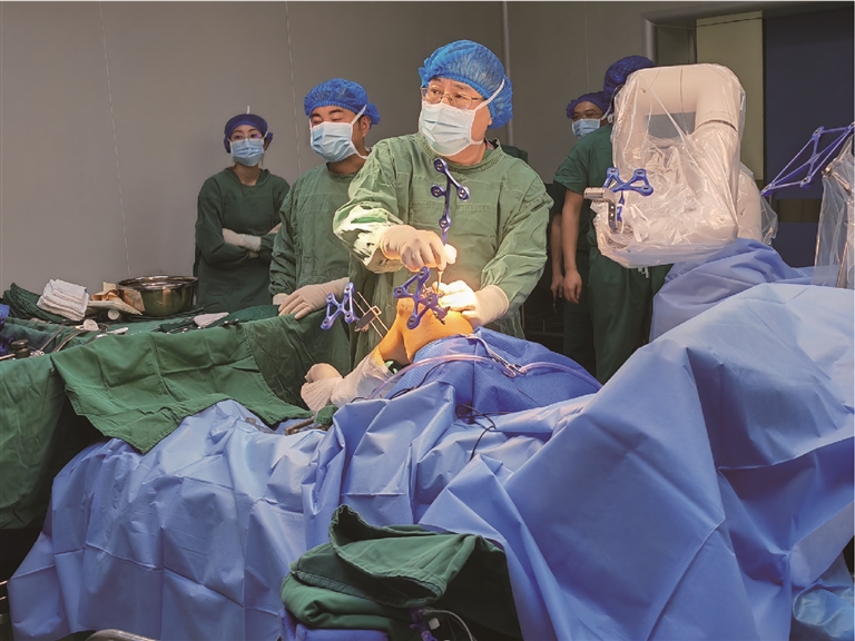 重慶援藏醫(yī)療專家開展西藏首例5G遠(yuǎn)程國產(chǎn)機(jī)器人全膝關(guān)節(jié)置換手術(shù)。