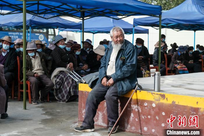圖為日喀則桑珠孜區(qū)東嘎鄉(xiāng)農(nóng)牧民在義診室外等待。 江飛波 攝