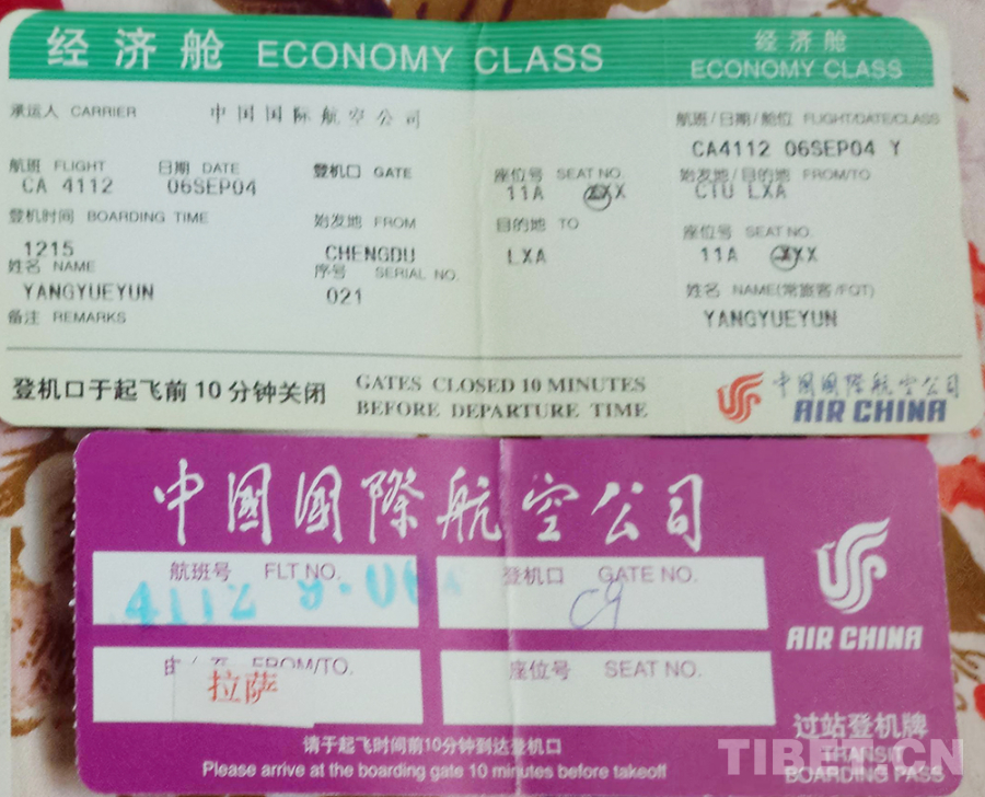 圖為2004年9月6日,作者第一次去西藏搭乘航班時的過站登機(jī)牌