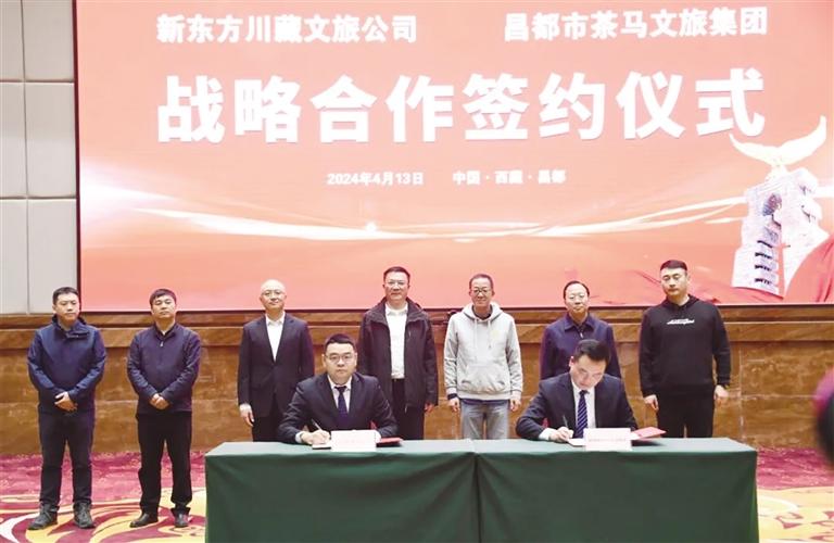 除了宣傳推廣昌都美景、好物,4月14日,俞敏洪還出席了昌都市茶馬文化旅游發(fā)展集團有限公司與新東方沃凱德(四川)文旅有限公司簽署戰(zhàn)略合作框架協(xié)議的簽約儀式。