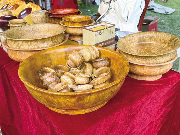 在加查縣,木碗制作技藝代代相傳。選材、切割、打磨、雕刻……在傳承人獨(dú)特的制作方式下,一個(gè)個(gè)紋路精美的藏式木碗被制作了出來。他們憑借精湛的技藝和豐富的經(jīng)驗(yàn),將一塊塊普通的木頭變成了一件件精美的藝術(shù)品?!艾F(xiàn)在,來買木碗的人不僅僅只是本地人了,很多游客也會買了帶回去當(dāng)伴手禮,我做的木碗能夠銷往全國各地讓我感到很開心。”扎雪木碗制作技藝傳承人洛桑次真說。