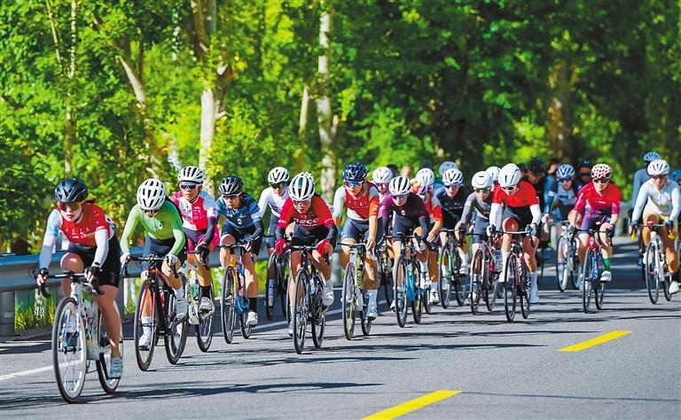 圖為參賽選手在綠蔭環(huán)繞的賽道上競速。記者 格桑倫珠 攝