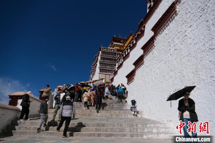 3月18日,參觀游客和朝佛信眾等拾級(jí)而上,登高前往布達(dá)拉宮。中新社記者 江飛波 攝
