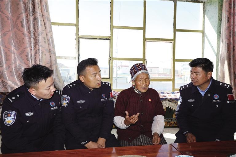 圖為移民管理警察走訪慰問老黨員倉決普赤。通訊員 格熱 記者 王香香 攝