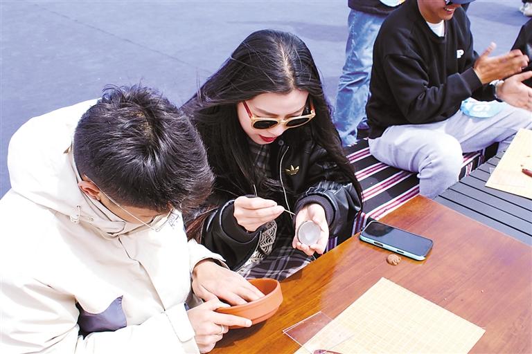 青年演奏扎念琴等樂(lè)器。記者 劉斯宇 攝