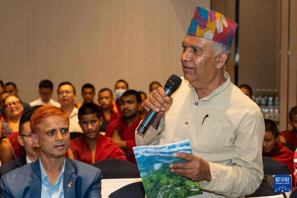 6月24日,一名中國藏學(xué)家在尼泊爾加德滿都舉辦的交流會上發(fā)言。新華社發(fā)(哈里·馬哈爾詹攝)