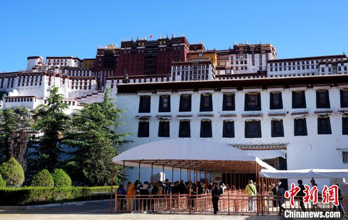 圖為游客排隊(duì)進(jìn)入布達(dá)拉宮參觀。中新社記者 李林 攝