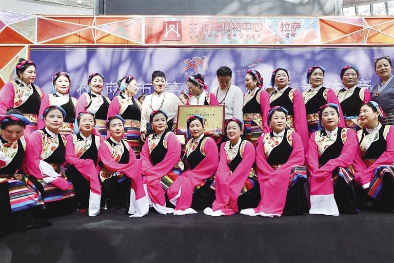 近日,拉薩市第三屆鍋莊舞大賽決賽在拉薩王府井購(gòu)物中心舉行。本次大賽由拉薩市體育局主辦、拉薩布達(dá)拉文化旅游集團(tuán)有限公司承辦。來(lái)自青年組和中年組的9支代表隊(duì)從預(yù)賽中脫穎而出,展開(kāi)了激烈角逐。