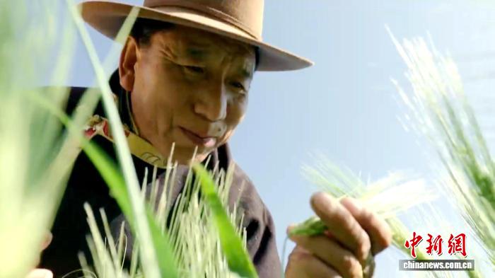 圖為《西藏·星空下的傳奇》鏡頭下老者在青稞田里手托麥穗。受訪者 供圖