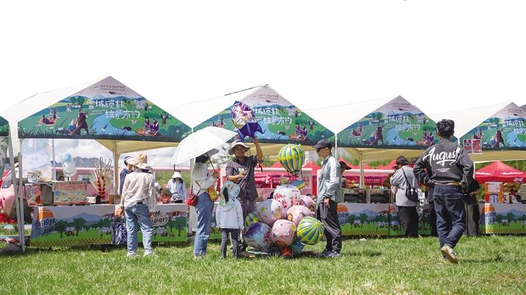 記者看到,綠野市集“沖賽康”充滿了煙火氣,30余家特色攤位齊聚林間。這里不僅有藏式甜茶、糌粑制品等傳統(tǒng)美食,讓游客大飽口福,還有氆氌文創(chuàng)、非遺手作等特色產(chǎn)品,滿足游客的購(gòu)物需求。此外,互動(dòng)游戲與民俗體驗(yàn)也吸引了眾多游客參與,營(yíng)造出充滿活力的林卡生活場(chǎng)景。