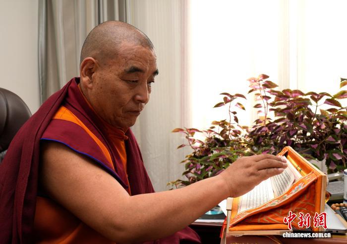 圖為班典頓玉在翻閱經(jīng)書(shū)。李林 攝