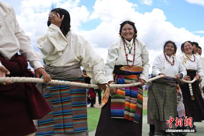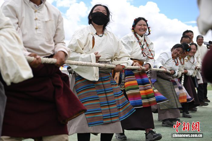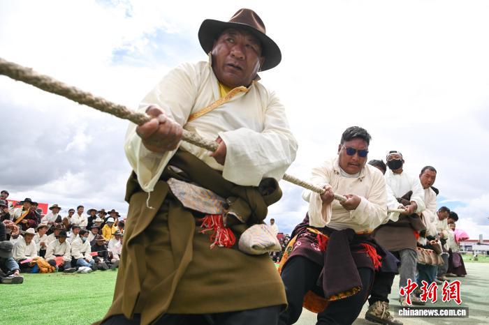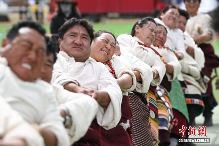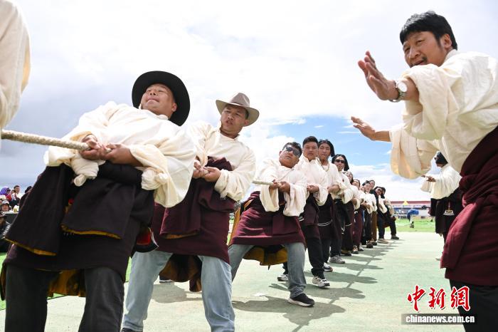 9月6日,西藏自治區(qū)那曲市恰青賽馬節(jié)的精彩賽事持續(xù)進(jìn)行,男女混合拔河比賽現(xiàn)場(chǎng)氣氛熱烈。來自那曲各縣的參賽隊(duì)伍齊聚賽場(chǎng),隊(duì)員們協(xié)同發(fā)力、奮勇拼搏。這一賽事不僅展現(xiàn)了那曲兒女的力量與默契,更傳遞出團(tuán)結(jié)協(xié)作的精神,為賽馬節(jié)增添了別樣活力。圖為那曲恰青賽馬節(jié)拔河比賽現(xiàn)場(chǎng)。中新社記者 貢嘎來松 攝