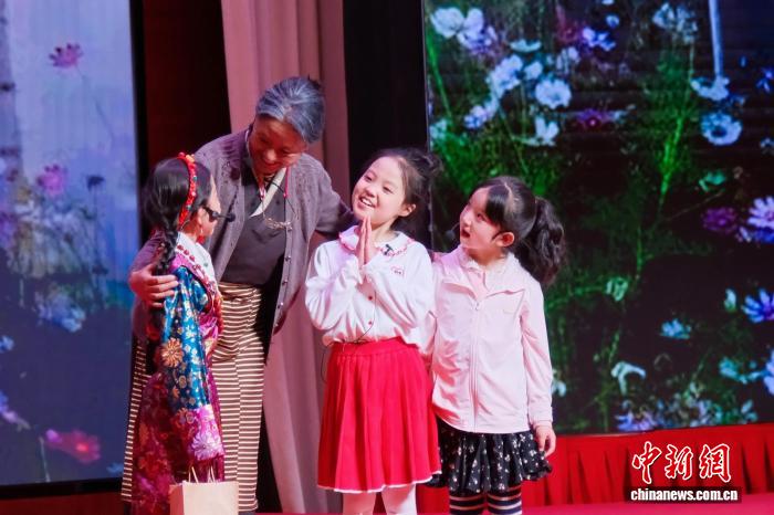 圖為民族團(tuán)結(jié)原創(chuàng)情景短劇《一起話下石榴紅》演出現(xiàn)場。西藏自治區(qū)民委 供圖