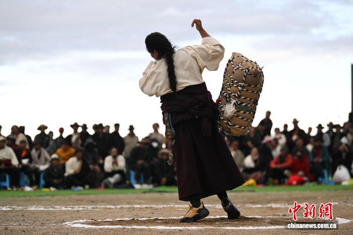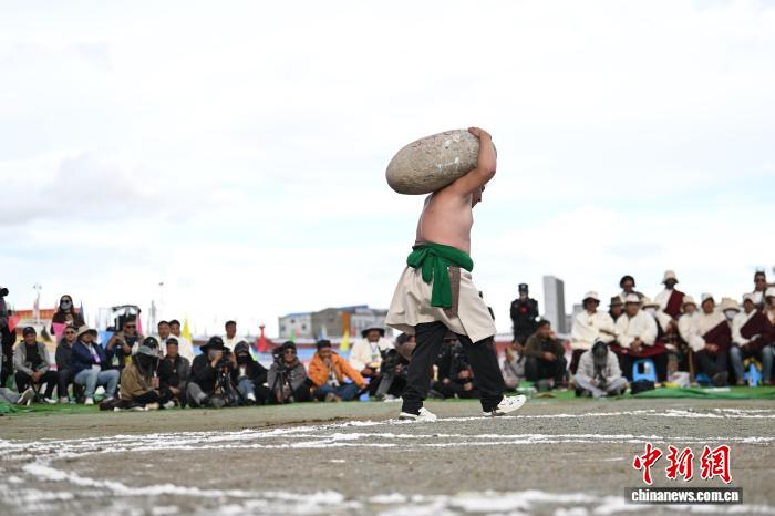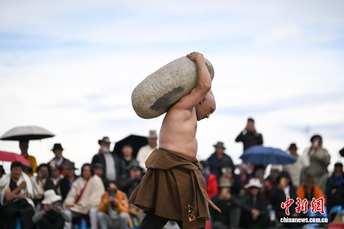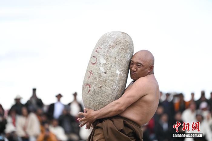 9月5日,2025年那曲市恰青賽馬節(jié)在格薩爾賽馬場(chǎng)開(kāi)幕。當(dāng)日,賽場(chǎng)中不僅有駿馬飛馳,更有力量的精彩較量。在抱石頭比賽現(xiàn)場(chǎng),來(lái)自那曲市各縣(區(qū))的男女選手們鼓足干勁,挑戰(zhàn)自我。這項(xiàng)傳統(tǒng)體育項(xiàng)目,展現(xiàn)了藏北人民的堅(jiān)韌與力量。圖為男參賽選手在抱石頭比賽。中新社記者 貢嘎來(lái)松 攝
