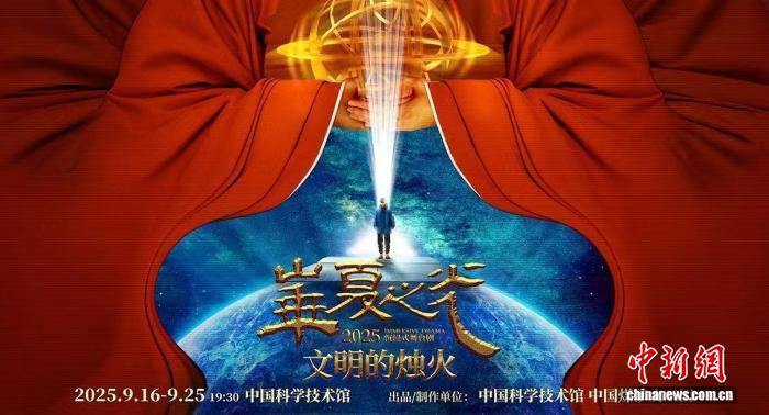 中國(guó)科技館9月14日發(fā)布消息說(shuō),值此首個(gè)全國(guó)科普月期間,該館將于9月16日至25日(每晚19:30-20:45)連演10場(chǎng)沉浸式舞臺(tái)劇《華夏之光-文明的燭火》,公眾可于9月15日中午12:00起,通過(guò)其官方網(wǎng)絡(luò)平臺(tái)預(yù)約觀看。