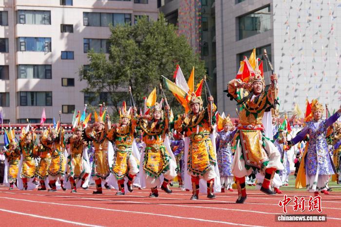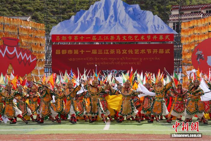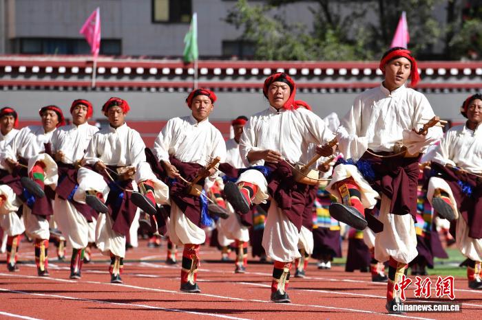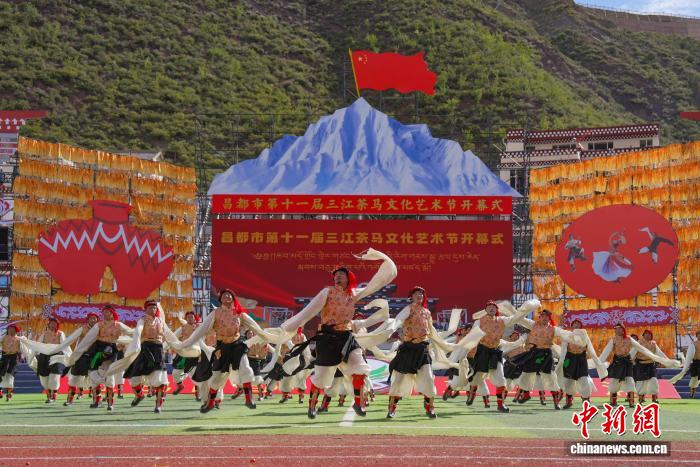 圖為開幕式上的文藝演出。貢確 攝