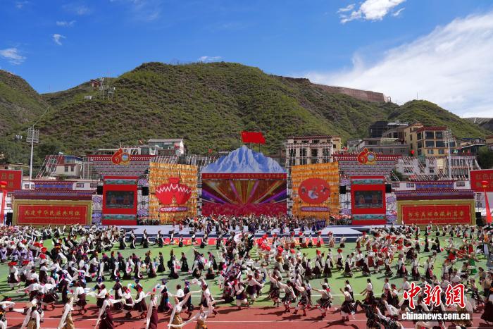 9月15日,西藏自治區(qū)昌都市第十一屆三江茶馬文化藝術(shù)節(jié)在津昌體育文化中心啟幕。開幕式以“紅色昌都 三江潮涌”為主題,由中共昌都市委員會、昌都市人民政府主辦,同步融入慶祝西藏自治區(qū)成立60周年元素,盡顯昌都文化魅力與發(fā)展活力。開幕式現(xiàn)場,來自昌都11縣(區(qū))、身著絢麗節(jié)日盛裝的游行方陣依次登場,各方陣通過特色展演展現(xiàn)地域文化風(fēng)采。隨后,正式文藝表演拉開帷幕,表演共分為“三江奔騰·紅色昌都”“金沙江·紅色起點(diǎn)”“怒江·指尖上的傳承”“瀾滄江·高原上的燈塔”“同心筑夢向未來”五個篇章??蛋臀幕囆g(shù)團(tuán)、天津青年友好使者藝術(shù)團(tuán)、全國廣場舞愛好者及11縣(區(qū))藝術(shù)團(tuán)等千余名表演者同臺獻(xiàn)藝。圖為開幕式上的文藝演出。貢確 攝