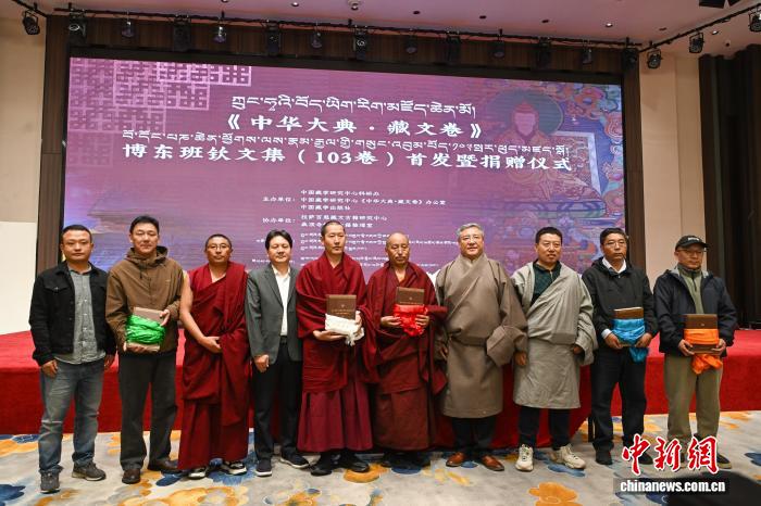 圖為《中華大典·藏文卷》之《博東班欽文集》捐贈儀式現(xiàn)場。貢嘎來松 攝