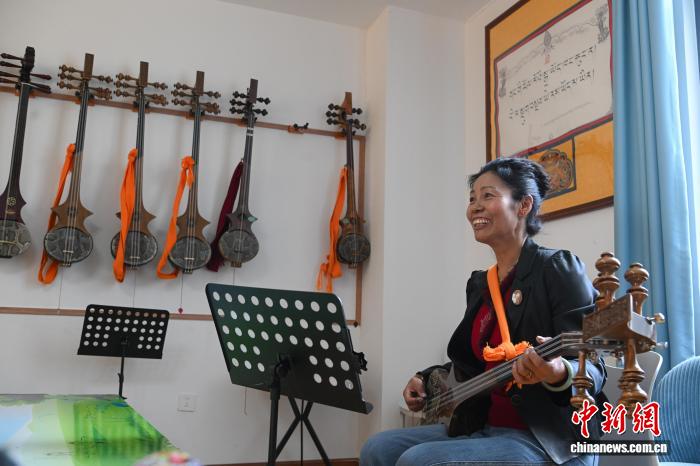 圖為民次旦卓瑪在八一社區(qū)老年活動中心學習扎念琴。貢嘎來松 攝