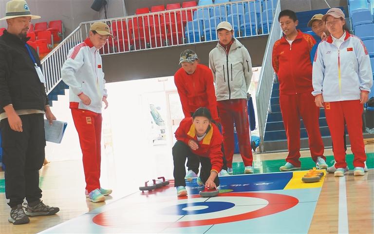 圖為運動員在進行旱地冰壺比賽。記者 明吉 攝