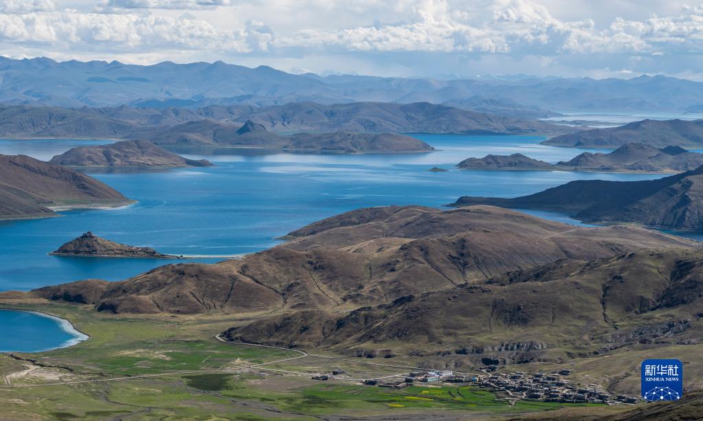 這是羊卓雍錯(cuò)(7月2日攝,無(wú)人機(jī)照片)。新華社記者 孫非 攝