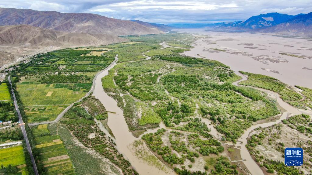 這是雅魯藏布江山南段公路兩旁的綠色長廊(2021年7月20日攝,無人機照片)。新華社記者 晉美多吉 攝