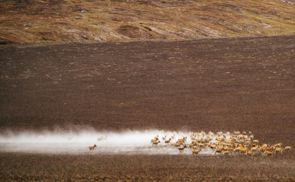 6月15日清晨在羌塘國家級自然保護區(qū)拍攝的遷徙中的母藏羚羊。