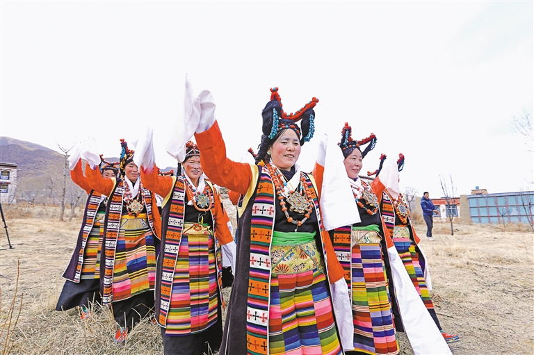 “如今,這支隊(duì)伍已發(fā)展到20多名成員,都是當(dāng)?shù)厝罕?。藝術(shù)隊(duì)經(jīng)常受邀參加各種大小晚會(huì)、重要節(jié)日演出和赴區(qū)內(nèi)外非遺展演等,其影響力和傳播力不斷提升,特別是甲瑪諧欽《和親路》受到廣泛歡迎。”甲瑪鄉(xiāng)工作人員德吉卓嘎說。