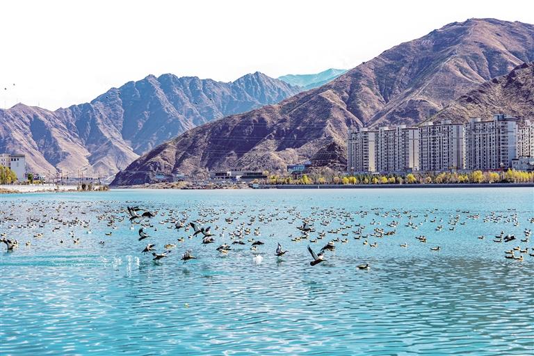 展翅飛翔的紅嘴鷗、在冬日暖陽(yáng)下游泳的黃鴨、河中戲水的斑頭雁……自10月中旬開始,來自各地的越冬候鳥陸續(xù)抵達(dá)西藏,它們跨越千山萬水尋找宜居的棲息地,并在西藏各地的濕地湖泊“安家落戶”。