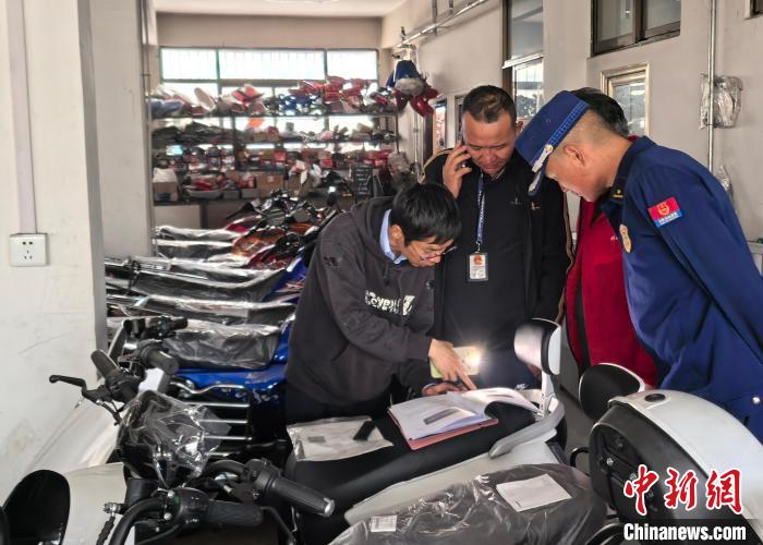 圖為西藏阿里噶爾縣消防救援大隊(duì)聯(lián)合相關(guān)部門對電動自行車銷售門店進(jìn)行檢查。魯茸次里 攝