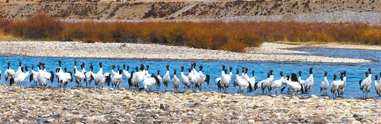 如今,一批又一批黑頸鶴從四川、青海等地啟程,歷經(jīng)近千公里的長(zhǎng)途跋涉,紛紛抵達(dá)西藏各越冬地,開(kāi)啟他們的越冬生活。