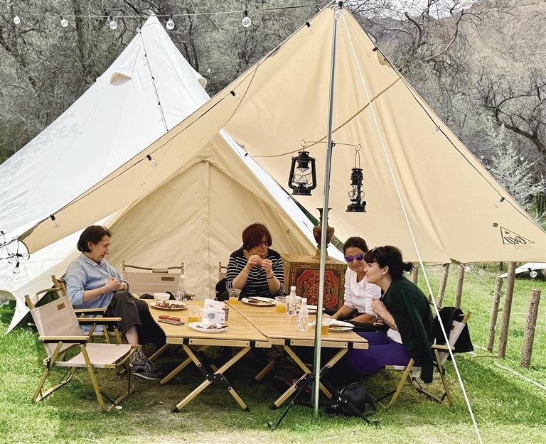 李女士說:“林卡中有一條小河流穿過,大人孩子可以在這里打水仗、坐船,玩累了還可以在這里燒烤,這就是我喜歡這里的原因?!背水?dāng)?shù)厝?,還有很多游客喜歡來這里體驗(yàn),喝一杯啤酒,跳一曲鍋莊舞,感受一下當(dāng)?shù)卮緲愕拿耧L(fēng)。