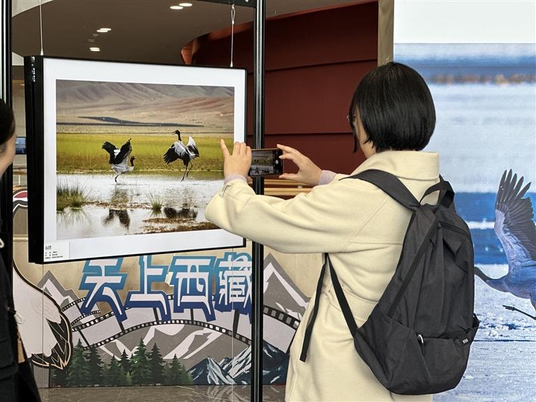據(jù)介紹,黑頸鶴是世界上唯一一種在高原地區(qū)繁殖、生活的鶴類。近年來,隨著全區(qū)生態(tài)保護(hù)力度不斷加強(qiáng),黑頸鶴種群數(shù)量穩(wěn)步增長(zhǎng)、棲息地范圍持續(xù)擴(kuò)大。今年2月,黑頸鶴當(dāng)選拉薩市鳥。本次巡展在首次“天上西藏·鶴鶴有鳴”主題攝影展的基礎(chǔ)上,進(jìn)一步拓展展覽內(nèi)容,豐富展覽形式,旨在以“高原精靈”黑頸鶴為媒介,積極探索“文旅+生態(tài)”融合發(fā)展的新路徑,力爭(zhēng)將“天上西藏·鶴鶴有鳴”打造成高原文旅特色品牌。未來我區(qū)將打造更多特色鮮明的觀鳥線路、旅游攝影點(diǎn),發(fā)展綠色旅游和“觀鳥經(jīng)濟(jì)”,吸引更多游客走進(jìn)西藏,領(lǐng)略西藏獨(dú)特的生態(tài)魅力和人文風(fēng)情。