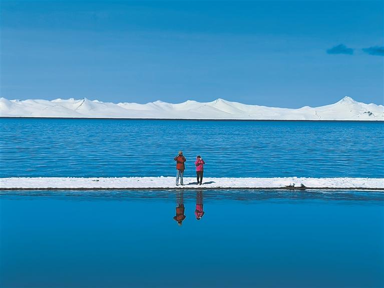 圖為游客在普莫雍錯游玩。記者 王敏 攝