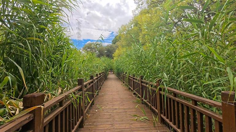 每天清晨和傍晚,拉魯濕地的木棧道上總是熱鬧的。63歲的邊巴次仁大叔幾乎天天來散步,看著動物們在蘆葦叢中嬉戲,遠(yuǎn)處布達(dá)拉宮熠熠生輝,他總?cè)滩蛔「袊@:“以前這里有些地方是爛泥塘,現(xiàn)在水更清、鳥更多,呼吸著濕潤的空氣,就是我們最平常的幸福。”退休教師達(dá)瓦常帶著孫子來喂候鳥,孩子興奮地數(shù)著黑頸鶴的數(shù)量,達(dá)瓦則回憶著:“小時候這里只是城郊的荒灘,如今成了國際認(rèn)可的生態(tài)寶地,看著真讓人高興?!睗竦乩锏乃参锖臀⑸镞€能過濾降解污染物,讓流過的水變得更干凈,為城市水系提供了源源不斷的清潔水源。