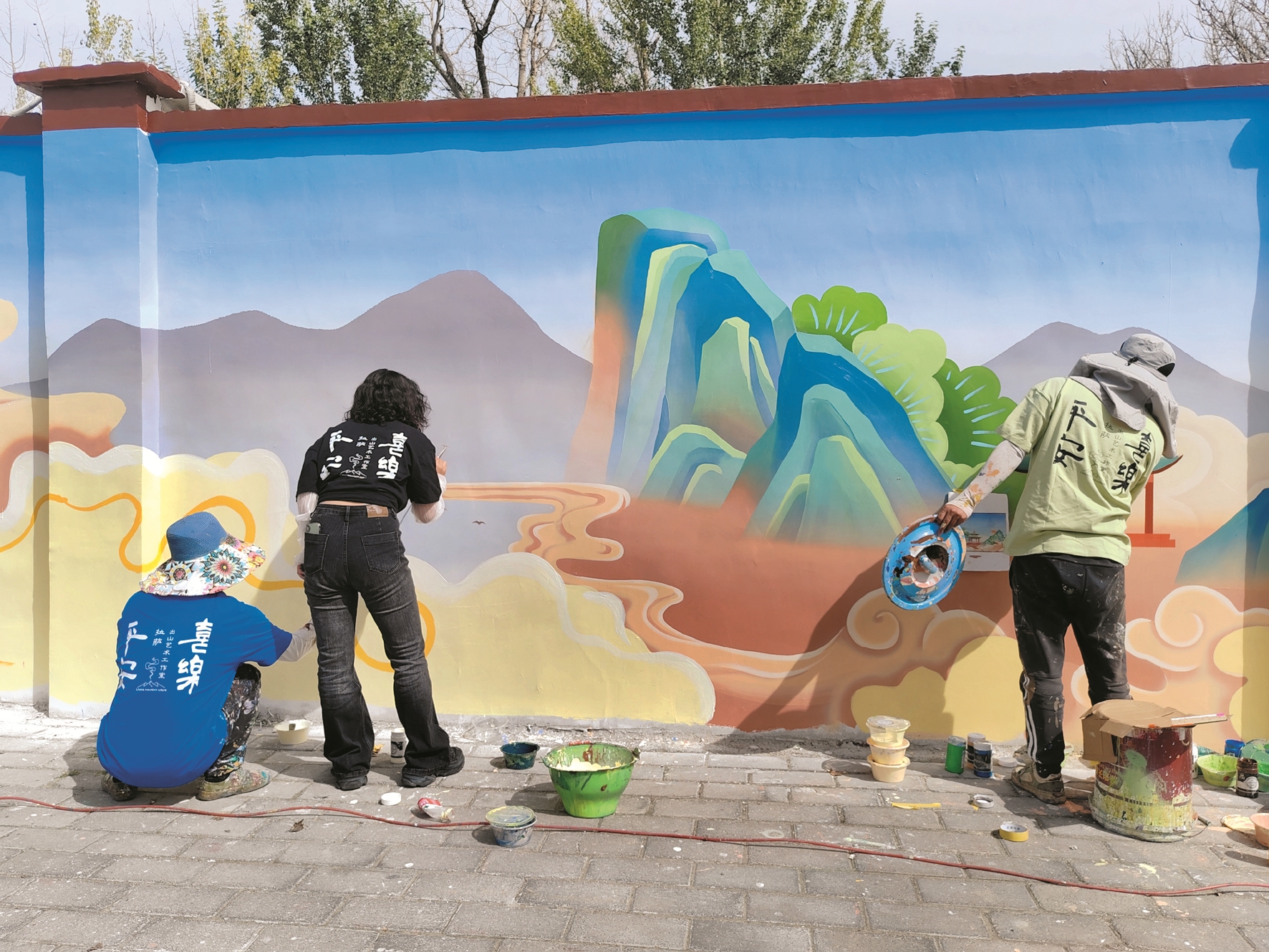 近期,在拉薩城區(qū)大街小巷,一幅幅形態(tài)鮮活、通俗易懂的彩繪被“搬”上了墻,讓原本單調(diào)的墻體靈動(dòng)起來,變成了傳播文明的窗口、學(xué)習(xí)教育的陣地、美化家園的景觀。從文創(chuàng)園區(qū)《文成公主》實(shí)景劇場(chǎng)向北眺望,西藏大學(xué)河壩林校區(qū)與它隔河相望,一幅構(gòu)思巧妙、主題鮮明、栩栩如生的文成公主進(jìn)藏連環(huán)圖在出山文化藝術(shù)工作室主理人安念初和她團(tuán)隊(duì)的手中,徐徐展開。她們手持畫筆和顏料,有條不紊地進(jìn)行墻體作畫,時(shí)而用筆在墻體上勾勒輪廓,時(shí)而用噴槍在墻上涂刷,將原本簡單的墻體變得趣味盎然、充滿活力。這幅唯美生動(dòng)、層次豐富、色彩飽滿的文化墻融入了拉薩元素,與周邊環(huán)境相融合,采用3D彩繪形式展示,用優(yōu)秀的傳統(tǒng)文化元素宣傳闡釋社會(huì)主義核心價(jià)值觀。
