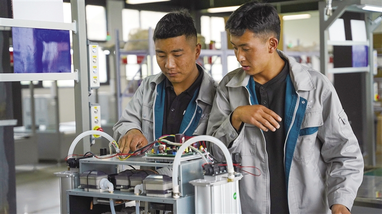 與巴桑有著相似經(jīng)歷的西藏山南籍大學(xué)生西落2023年入職西藏清匠電器科技有限公司,通過(guò)自己不斷努力,很快適應(yīng)了崗位工作,現(xiàn)在已經(jīng)是公司車(chē)間部組長(zhǎng)。西落告訴記者,在公司能學(xué)到很多實(shí)實(shí)在在的技能,而且福利待遇很好,除了固定收入以外,公司每月組織員工集體生日會(huì),還設(shè)立了員工娛樂(lè)區(qū)、健身區(qū)等,工作環(huán)境和氛圍都很好。
