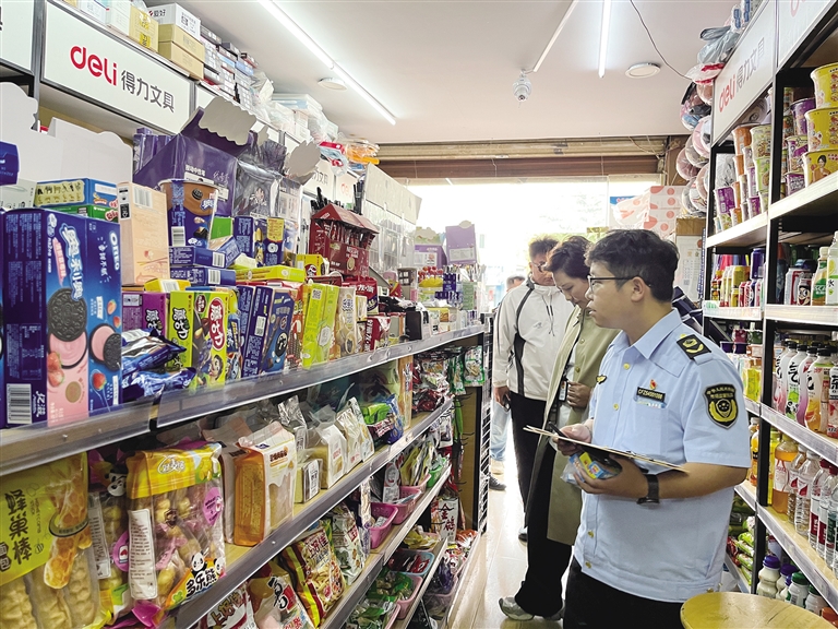 除了蠟瓶糖等網(wǎng)紅零食外,當(dāng)日,檢查組還對校園周邊小賣部內(nèi)出售的辣條(片)、油炸面制品、膨化食品等進(jìn)行了檢查,對經(jīng)營主體資質(zhì)、索證索票和進(jìn)貨查驗(yàn)記錄制度等情況開展檢查,嚴(yán)厲打擊銷售過期食品、“三無”食品等違法行為。