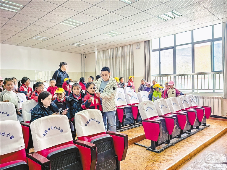 工作人員為學(xué)生進行屈光檢測。記者 央金 攝